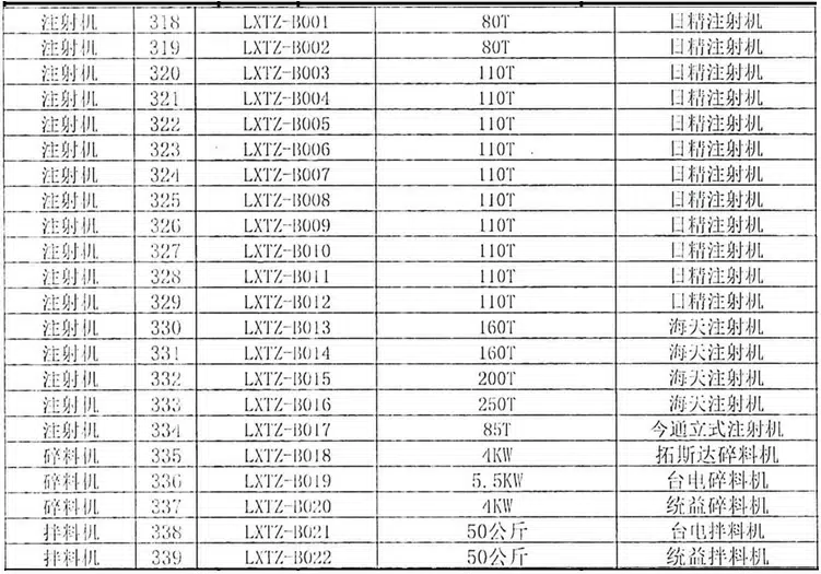 Nearly 100 molding equipment